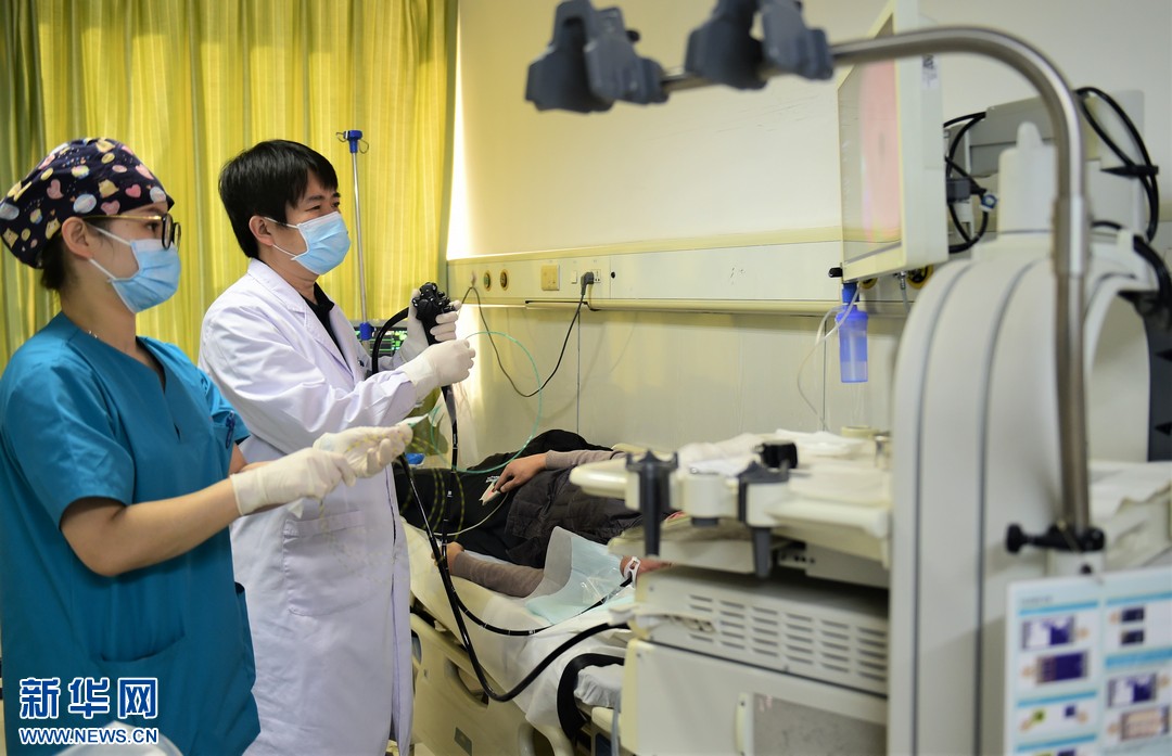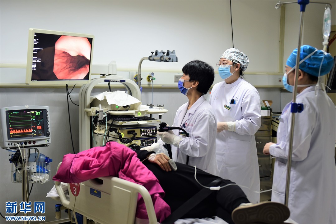 12月16日,滄州市人民醫(yī)院內鏡中心醫(yī)務人員為患者進行上消化道腫瘤篩查。新華網(wǎng)發(fā)(傅新春 攝)